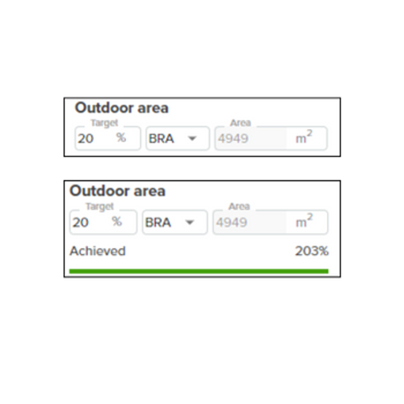 Naviate Outdoor Area lets you see the defined building site in relation to sun exposure, noise quality and terrain steepness. As you add more data into the model, the results will be visible in the projects Outdoor Area status bar giving you full overview and helps to secure the best possible outcome.