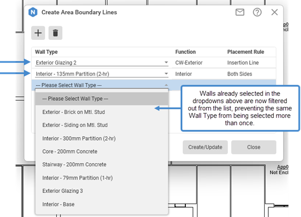 1 Updated dropdown selection to exclude already selected Wall Types.
