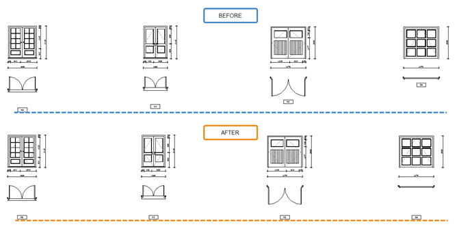 3b If all Doors/Winodws are flipped or mirrored, one of them will be selected as the reference for that drawing type.