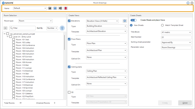 From now on you can Save Current, Save As, Rename and Delete settings for Room Drawings
