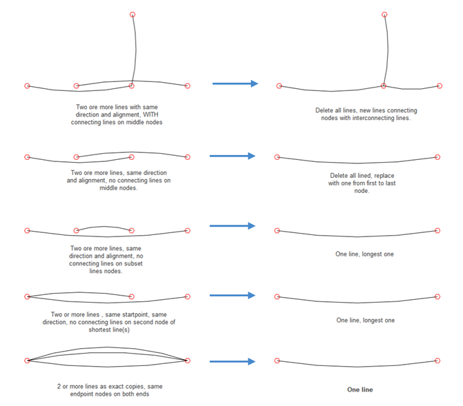 Clean up overlapping lines of the same style with a single click. Before running the tool, you can set a tolerance value. After the cleanup, a report dialog lists all changes made, with the option to zoom in on specific modifications for review.
