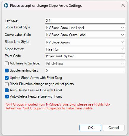 - Slope Format can be set to Percent, Rise:Run or Run:Rise. Note that when setting slope in Rise:Run or Run:Rise, it is always the Run-value that is entered.