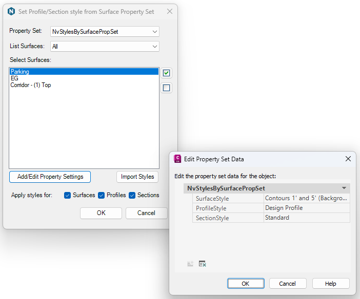 With this command you can store a set of styles (Surface, profile and section) on a surface in your drawing. The settings can then be applied to all profiles and sections where the surface is used. Also works for Data Shortuts.