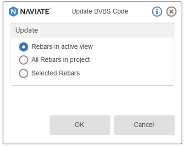 You can now update the BVBS code for rebars in the active view or for selected rebars only.