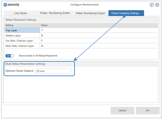 A new tool to simplify and accelerate the setup of rebar presentation in views. In Configure Reinforcement settings, you can define a minimum distance allowed between visible bars: